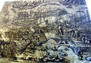 Gravure de la bataille de Lépante le 7 octobre 1571