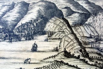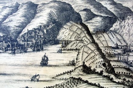 Reproduction d’un tableau du 17e siècle avec galères à la manœuvre