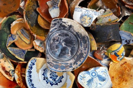 Brisée en plusieurs morceaux cette assiette ligure est de nouveau reconstituée
