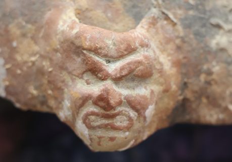 Une pipe en terre avec tête grimaçante. Des milliers de ces petits foyers à fumer le tabac ont été mis au jour en rade de Villefranche